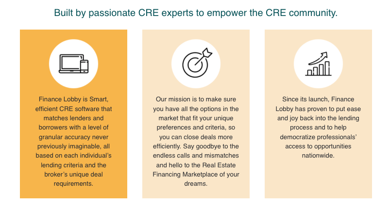 Finance Lobby was conceived, designed, built, and brought to market by a passionate group of high-performing mortgage professionals. In their careers, they personally experienced the pains involved in the endless chase of calls, mismatches, denials, fall-throughs, and so on.